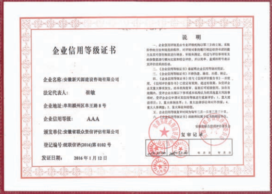 企業(yè)信用等級(jí)3A